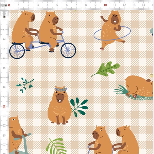 Descrição Tecido Tricoline Digital Capivara Fundo Xadrez