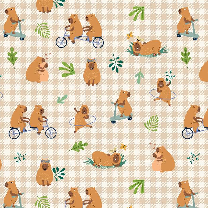 Tecido Tricoline Digital Capivara Fundo Xadrez