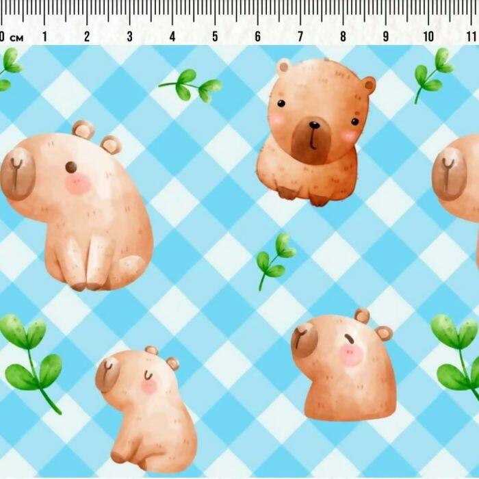 Descrição Tecido Tricoline Digital Capivara Xadrez Azul