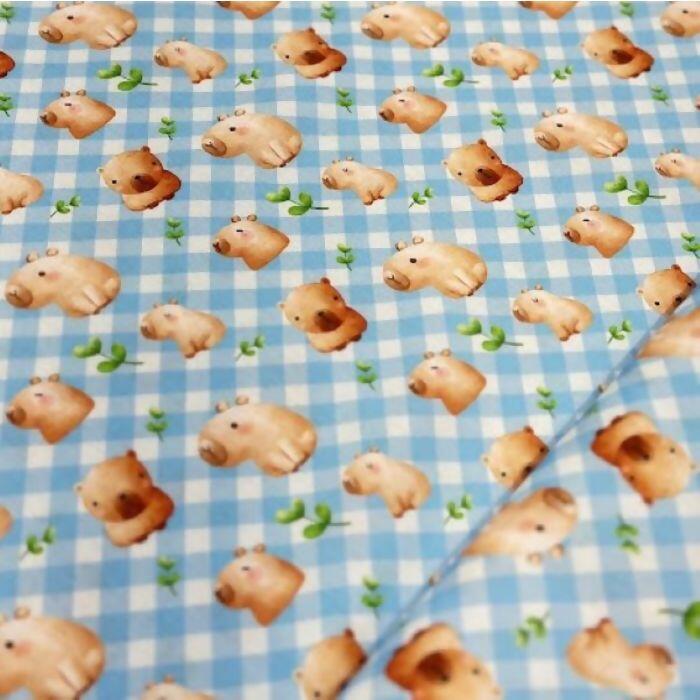 Tecido Tricoline Digital Capivara Xadrez Azul