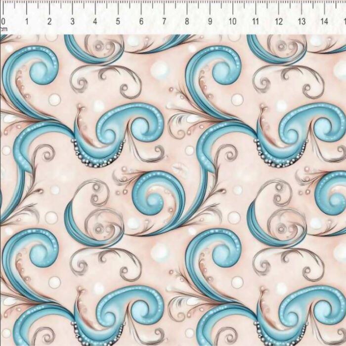 Descrição Tecido Tricoline Digital Caracóis Blush