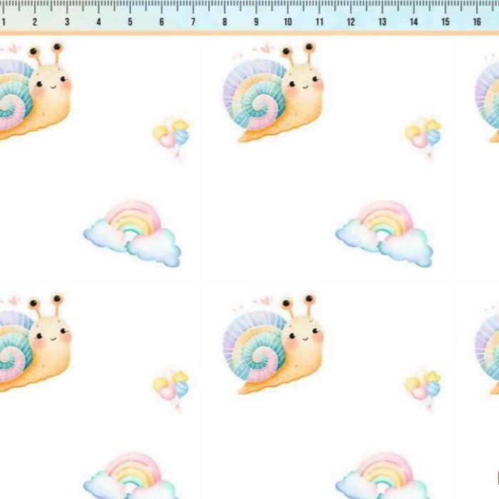 Descrição Tecido Tricoline Digital Caracol Arco Íris