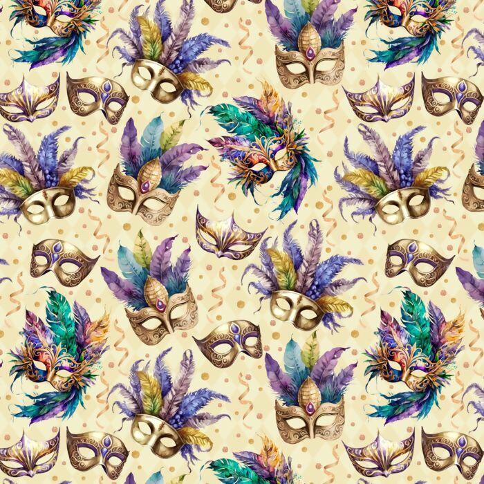 Tecido Tricoline Digital Carnaval Máscaras Fundo Bege