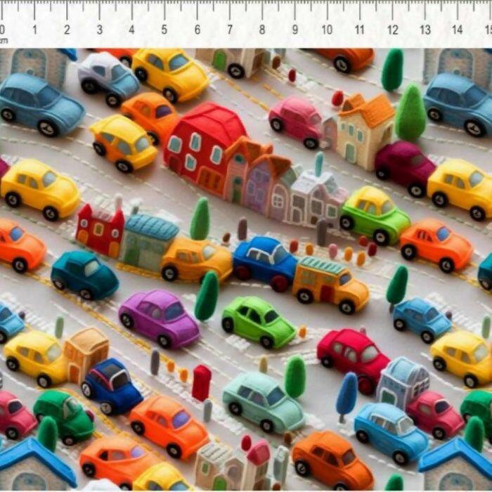 Tecido Tricoline Digital Carrinhos Coloridos 1