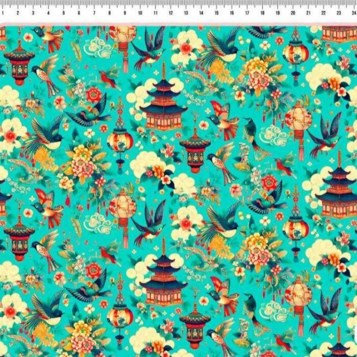 Descrição Tecido Tricoline Digital Casa Flores Oriental