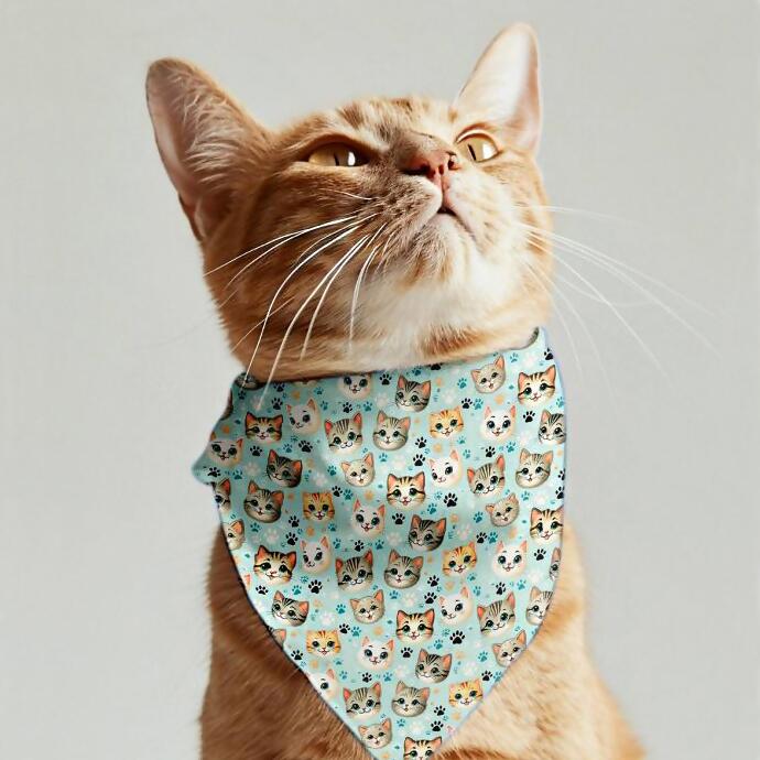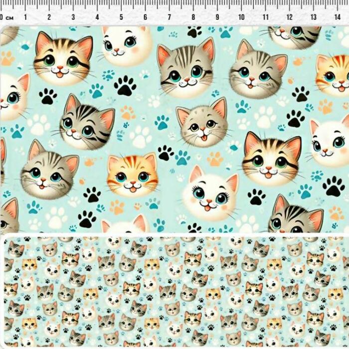 Descrição Tecido Tricoline Digital Cats Carinha de Gato