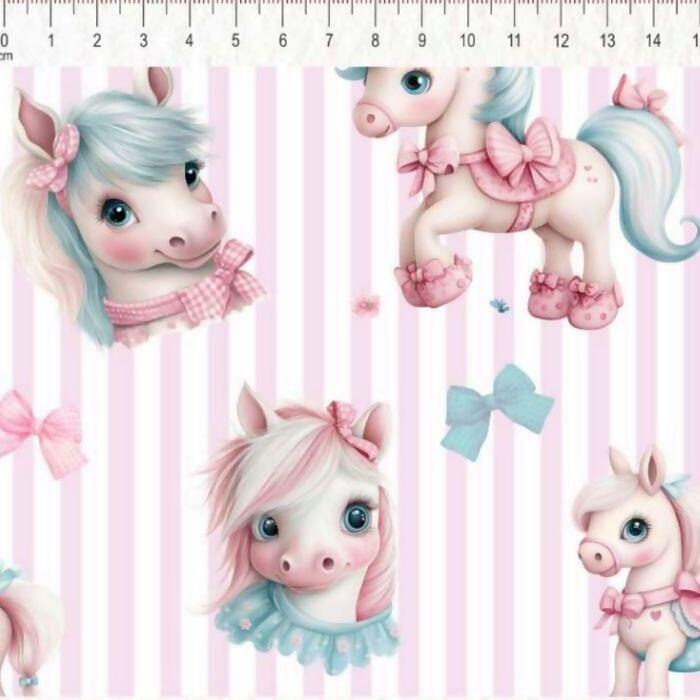 Descrição Tecido Tricoline Digital Cavalinhos Fundo Rosa