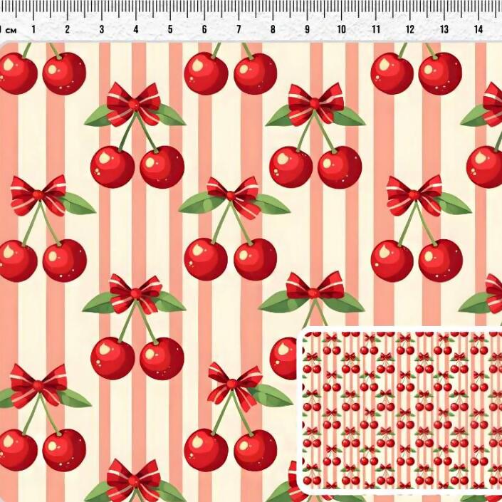 Descrição Tecido Tricoline Digital Cereja Listra Rose