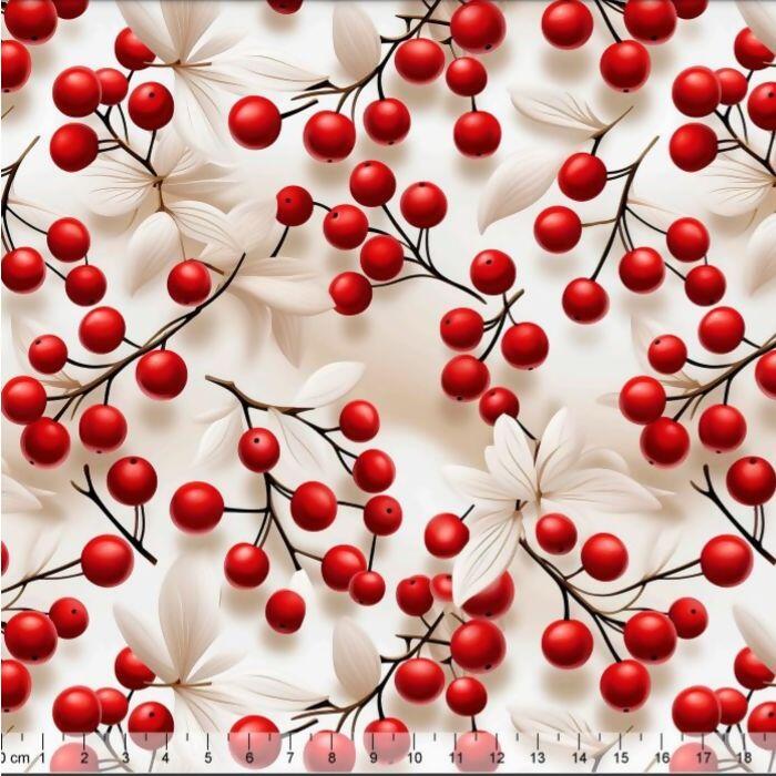 Descrição Tecido Tricoline Digital Cerejas Fundo Branco
