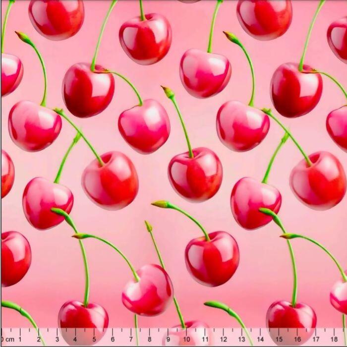 Descrição Tecido Tricoline Digital Cerejas Fundo Vermelho