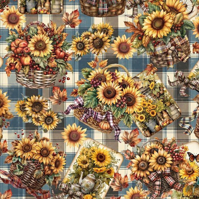 Descrição Tecido Tricoline Digital Cesta de Girassol