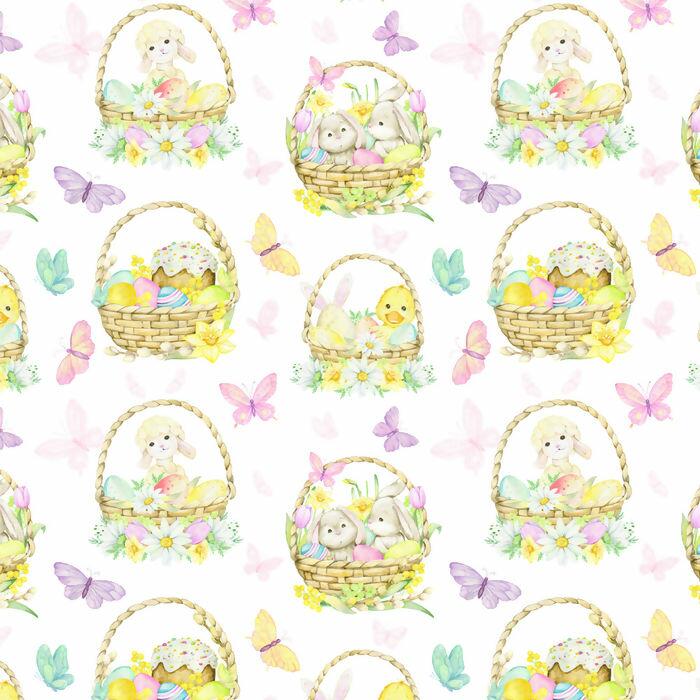 Descrição Tecido Tricoline Digital Cesta de Páscoa