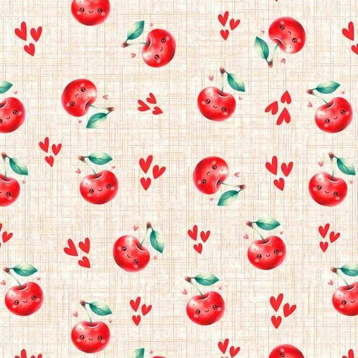 Descrição Tecido Tricoline Digital Cherry Kitties Cerejas