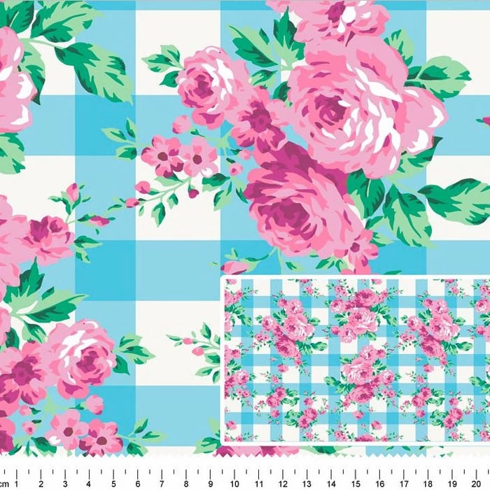 Descrição Tecido Tricoline Digital Chita Xadrez Azul