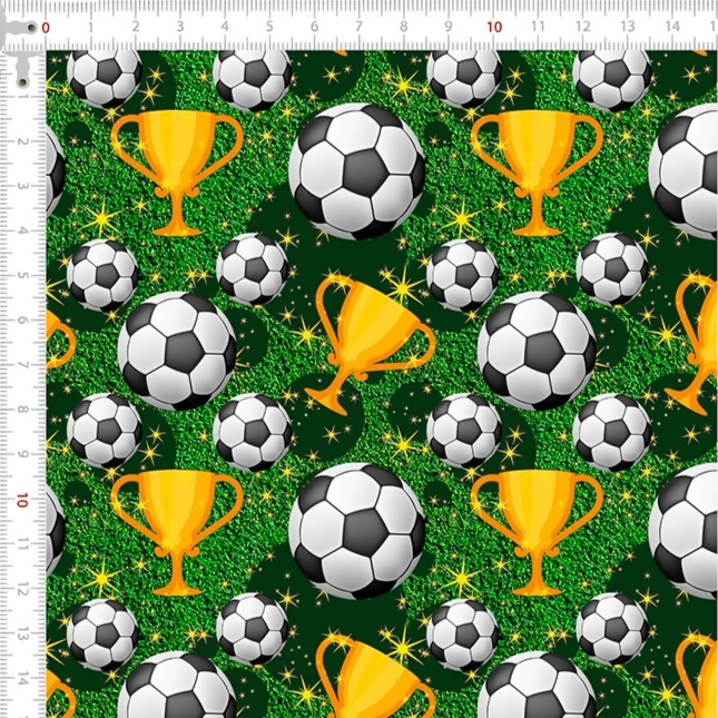 Descrição Tecido Tricoline Digital Copa do Mundo Fundo Verde