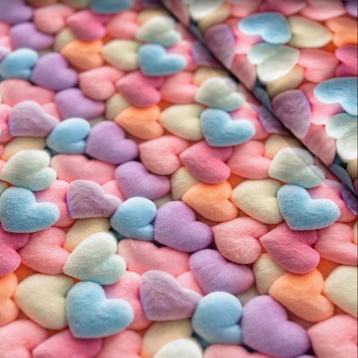 Descrição Tecido Tricoline Digital Coração Felpudo Colorido
