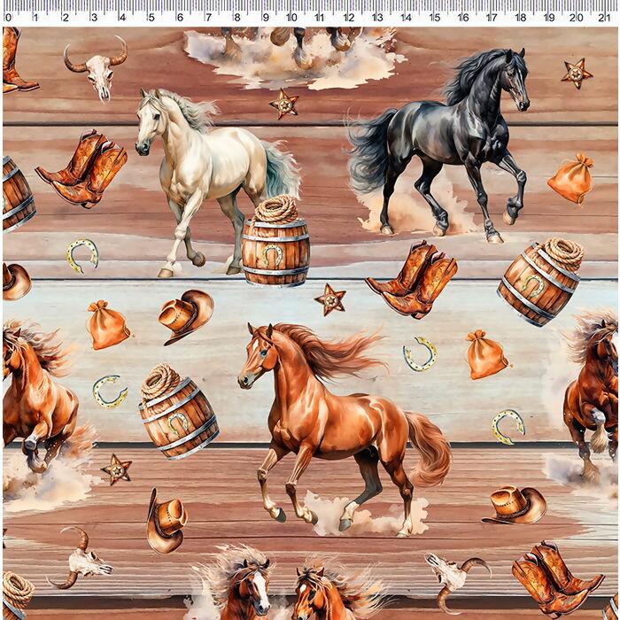 Descrição Tecido Tricoline Digital Corrida Cavalos