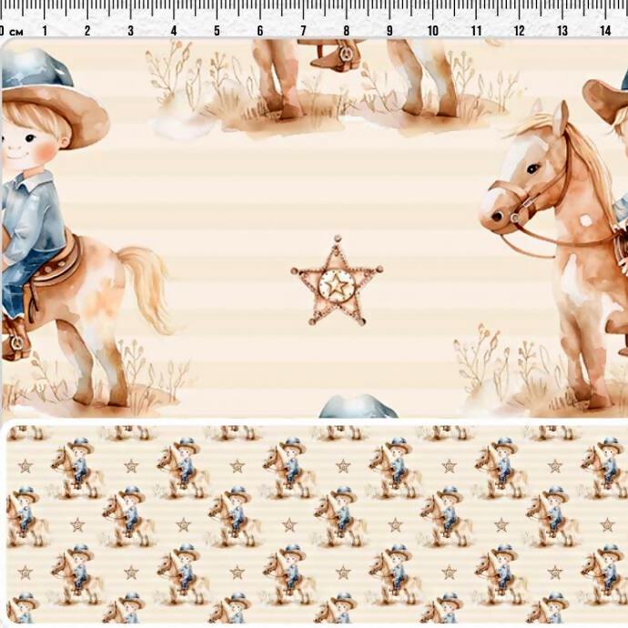 Descrição Tecido Tricoline Digital Country Infantil Menino Cavalo