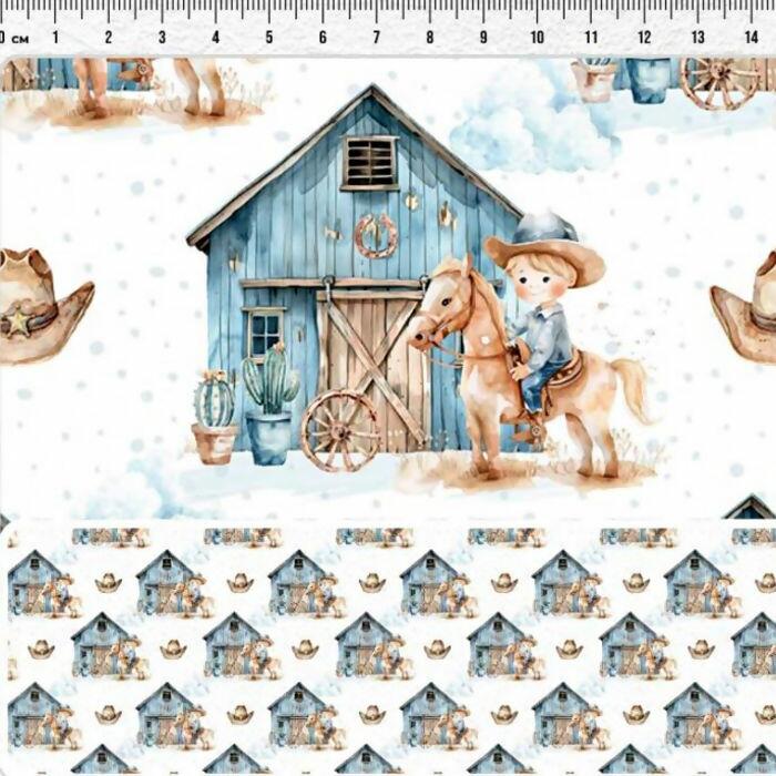Tecido Tricoline Digital Country Infantil Menino Celeiro