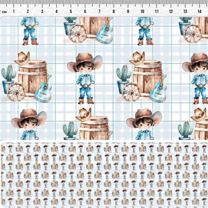Descrição Tecido Tricoline Digital Country Infantil Menino Tonéis