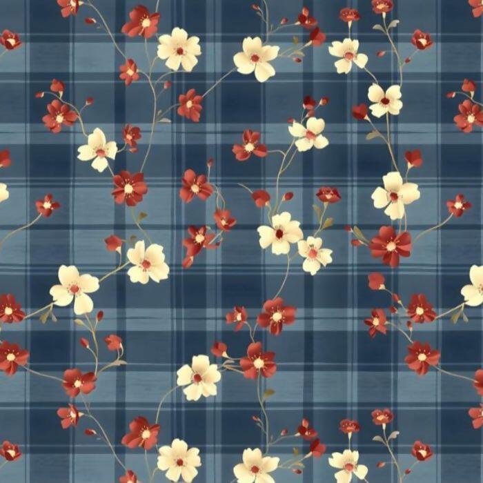 Descrição Tecido Tricoline Digital Country Life Xadrez Fundo Azul