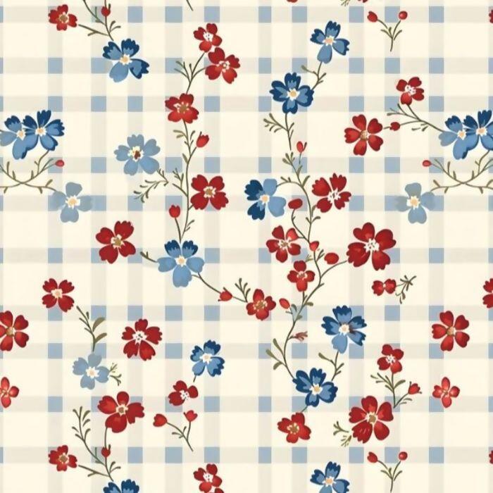 Descrição Tecido Tricoline Digital Country Life Xadrez Fundo Bege