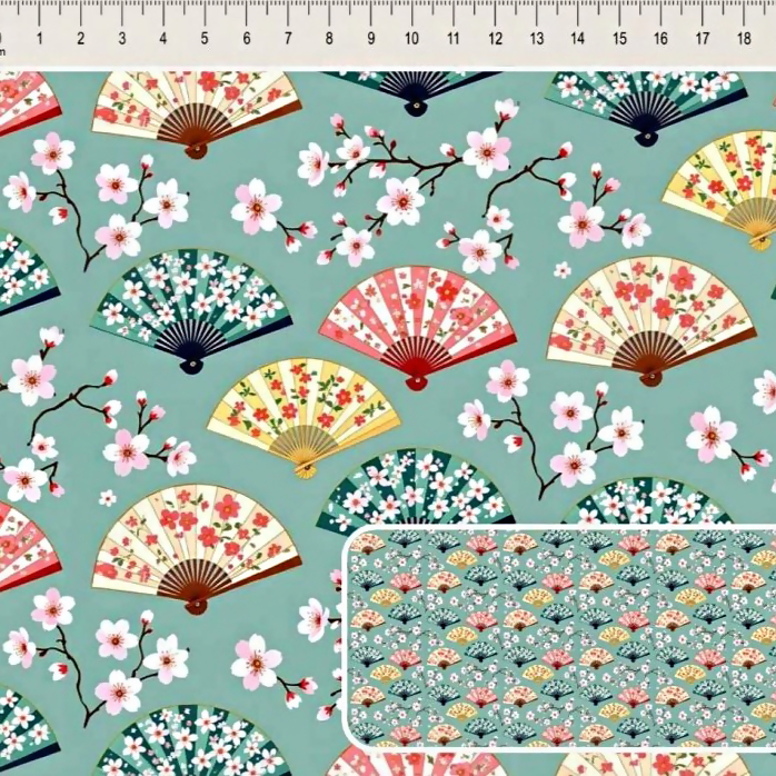 Descrição Tecido Tricoline Digital Cute Kokeshi Leques