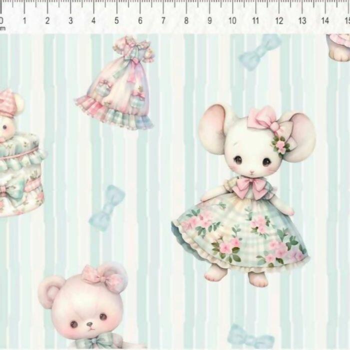 Descrição Tecido Tricoline Digital Cute Ratinhas