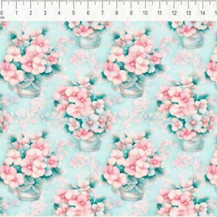 Tecido Tricoline Digital Cute Vasos de Flores