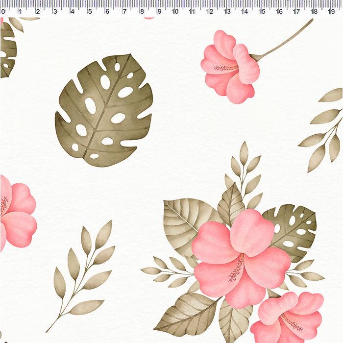 Tecido Tricoline Digital Dino Floral