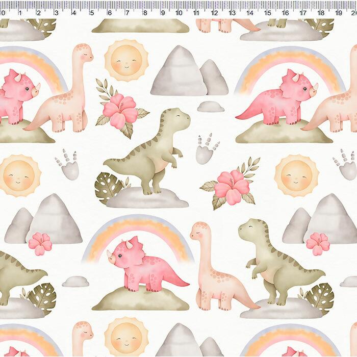 Descrição Tecido Tricoline Digital Dino Médio Arco-íris
