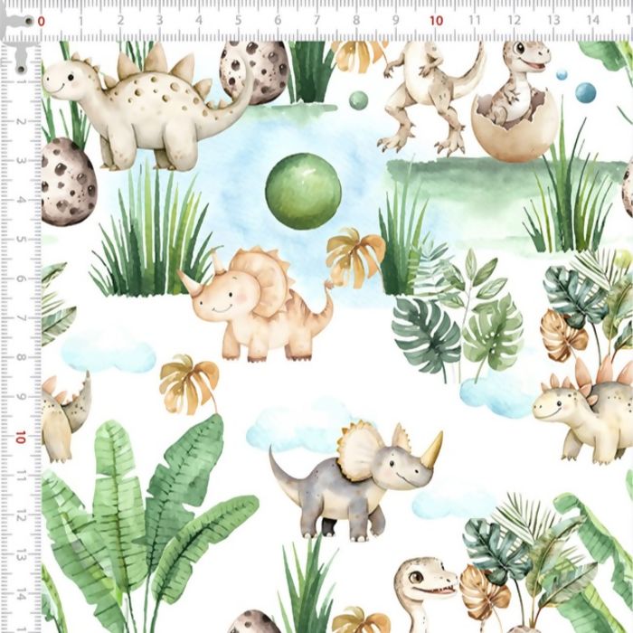 Descrição Tecido Tricoline Digital Dinossauros e Floresta