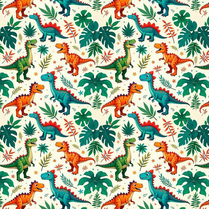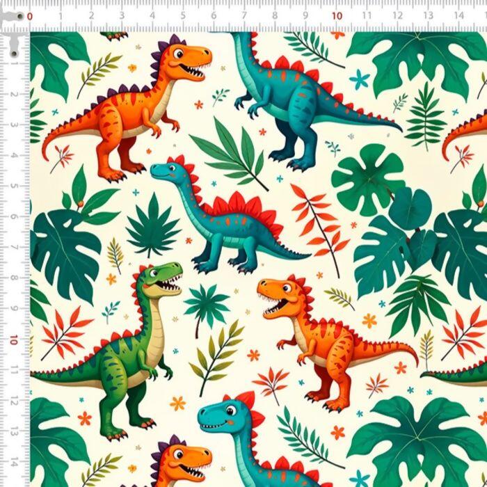 Descrição Tecido Tricoline Digital Dinossauros Fundo Bege