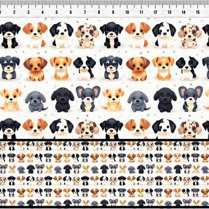 Descrição Tecido Tricoline Digital Dogs Cachorros Puppies
