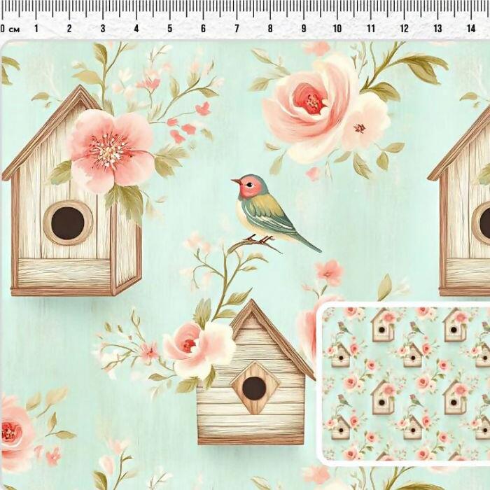 Descrição Tecido Tricoline Digital Dreamy Casa de Passarinhos