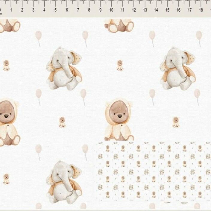 Tecido Tricoline Digital Dupla Fofura Urso e Elefante