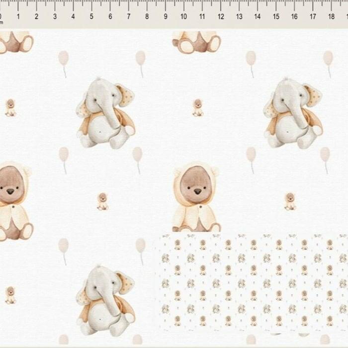 Descrição Tecido Tricoline Digital Dupla Fofura Urso e Elefante