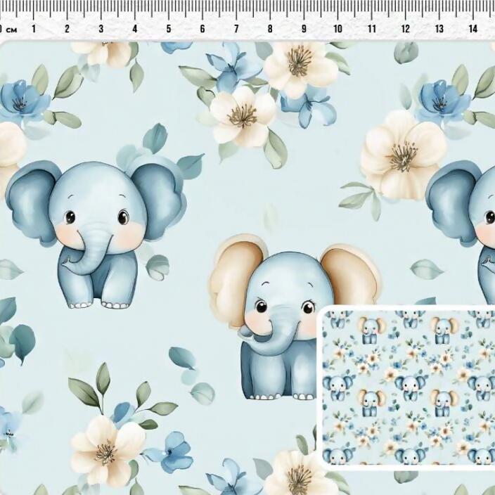 Descrição Tecido Tricoline Digital Elefante Fundo Azul