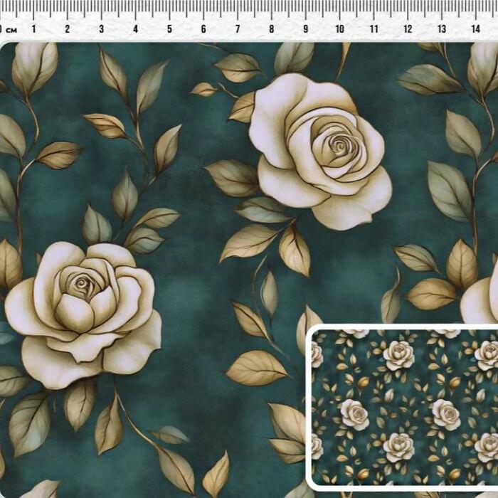 Tecido Tricoline Digital Emerald Rosas