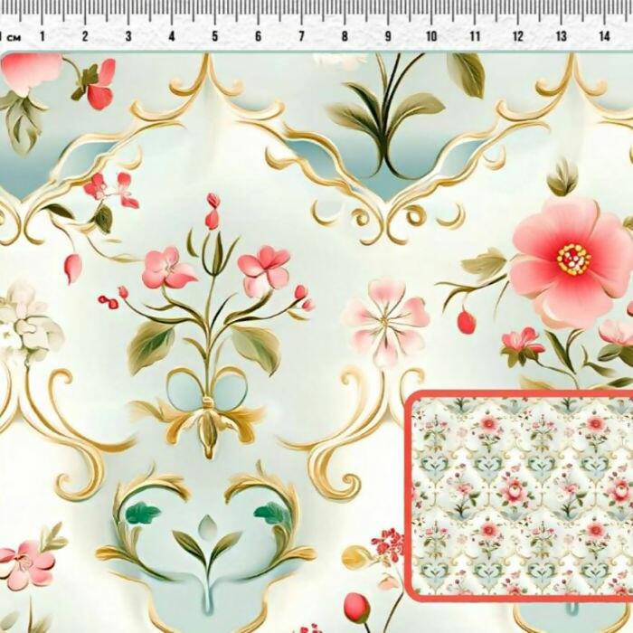 Tecido Tricoline Digital Encanto Barroco Floral Contornos