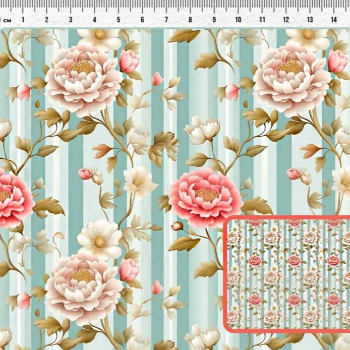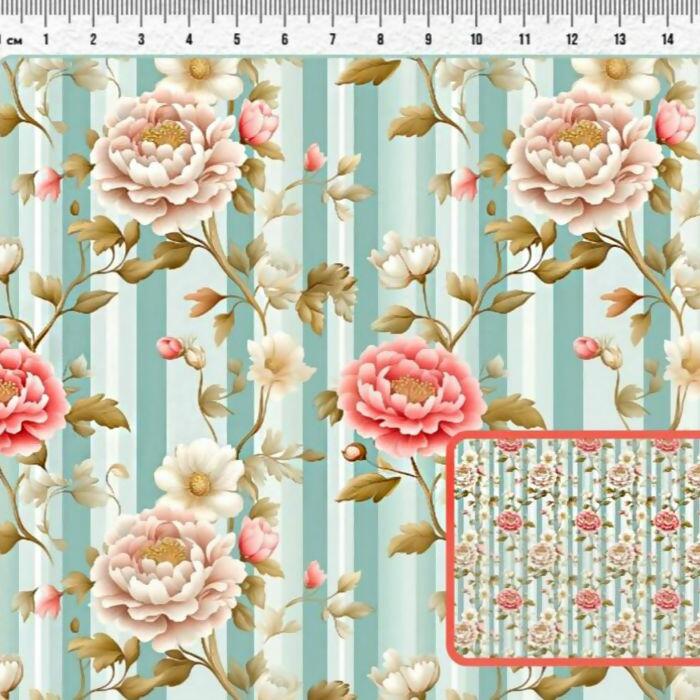 Tecido Tricoline Digital Encanto Barroco Floral Fundo Listrado