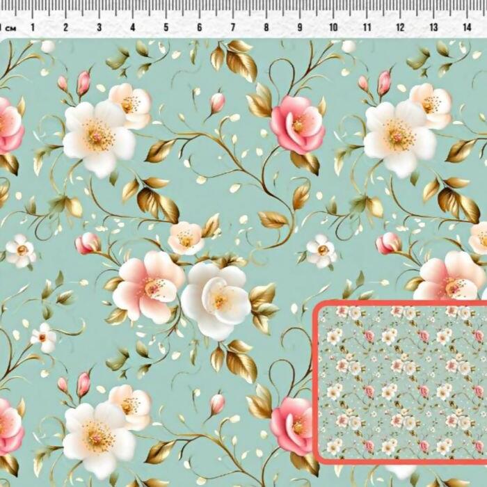 Tecido Tricoline Digital Encanto Barroco Floral Fundo Verde
