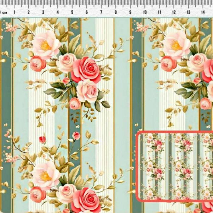 Descrição Tecido Tricoline Digital Encanto Barroco Floral Listras