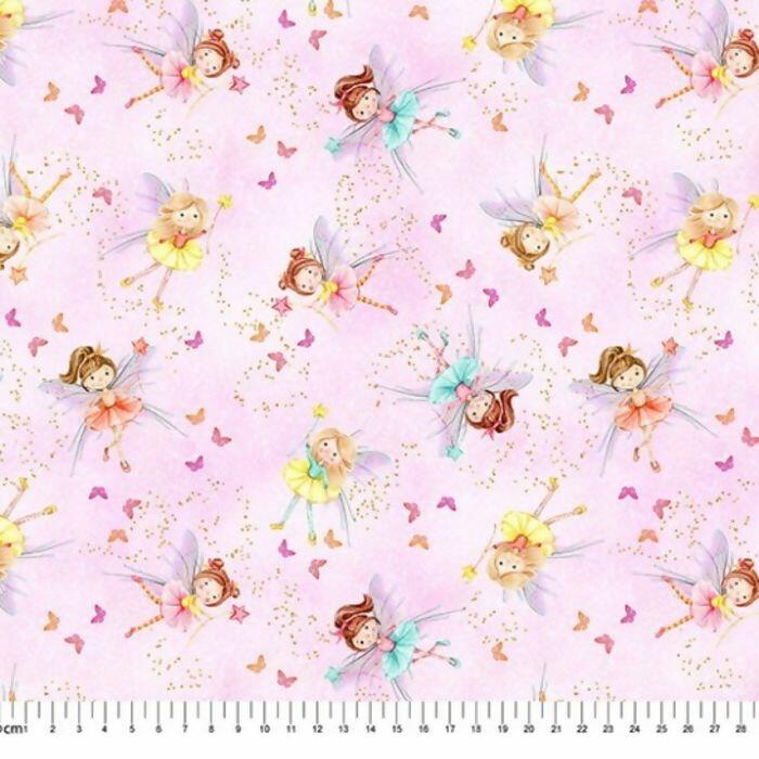Tecido Tricoline Digital Encanto Fadas Fundo Rosa