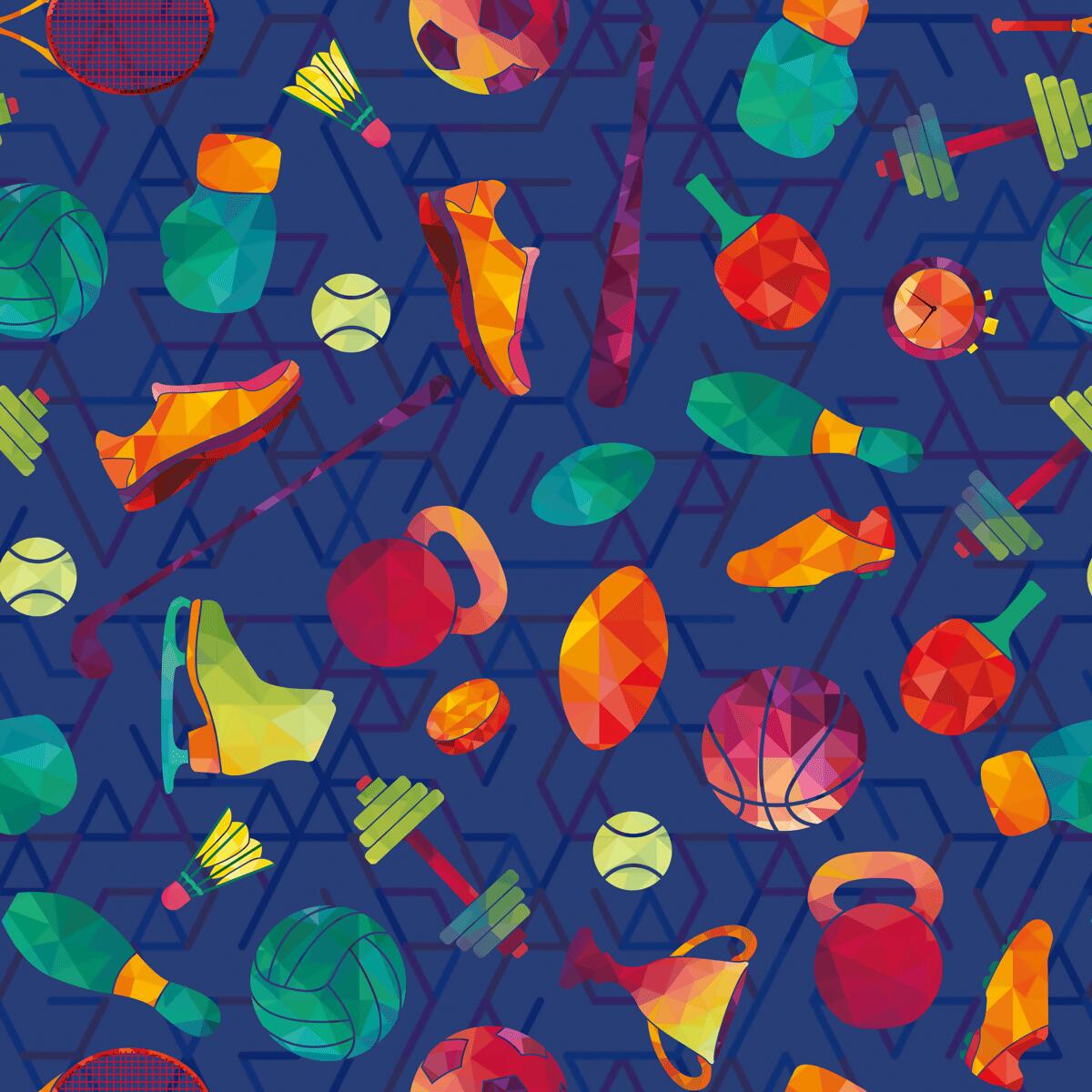 Descrição Tecido Tricoline Digital Esportes Fundo Azul