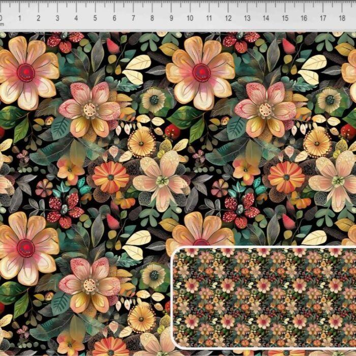 Descrição Tecido Tricoline Digital Exuberance Fundo Preto