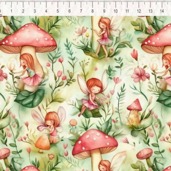 Descrição Tecido Tricoline Digital Fadas Encantadas