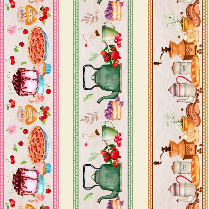 Tecido Tricoline Digital Faixas/Barrado Chá da Tarde