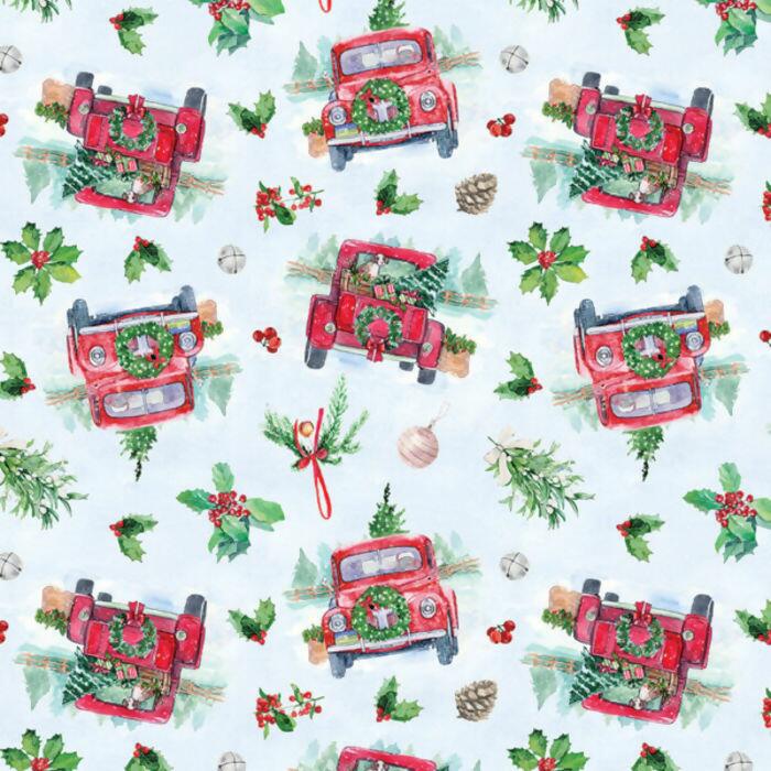 Tecido Tricoline Digital Farmhouse Cristmas Carros Natalinos