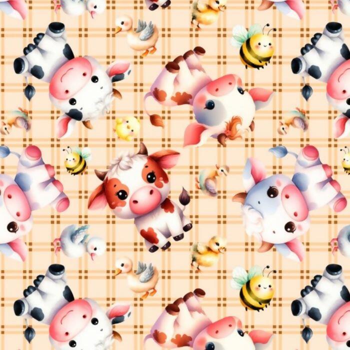 Descrição Tecido Tricoline Digital Fazenda Feliz Fundo Xadrez